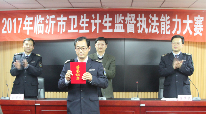 本次大赛根据执法人员的业务范围分为医疗卫生、公共卫生和计划生育3个专业,采用闭卷考试的形式,设理论考试、案例分析与模拟办案三个环节,重点考核参赛人员的法律法规、专业知识的掌握情况和操作技能的熟练程度。经过一天激烈的角逐,最终,临沭县代表队、郯城县代表队、沂南县代表队分别荣获团体一、二、三等奖;陈九勇、李蒙蒙、陈德吉3人分别荣获全优奖一、二、三等奖。