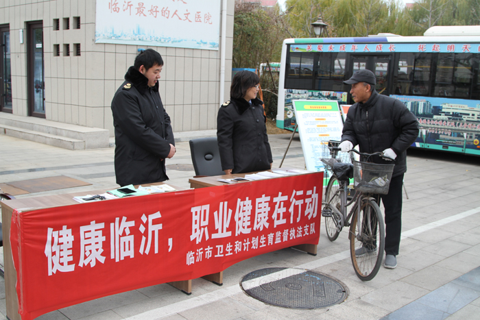 为进一步规范职业卫生与放射卫生监督,提高广大群众的职业健康与放射防护意识,保障广大群众的健康权益,市卫生计生监督执法支队根据《2017年全市卫生计生监督执法宣传工作方案的通知》要求,于11月29日开展了以“健康临沂,职业健康在行动”为主题的宣传活动。